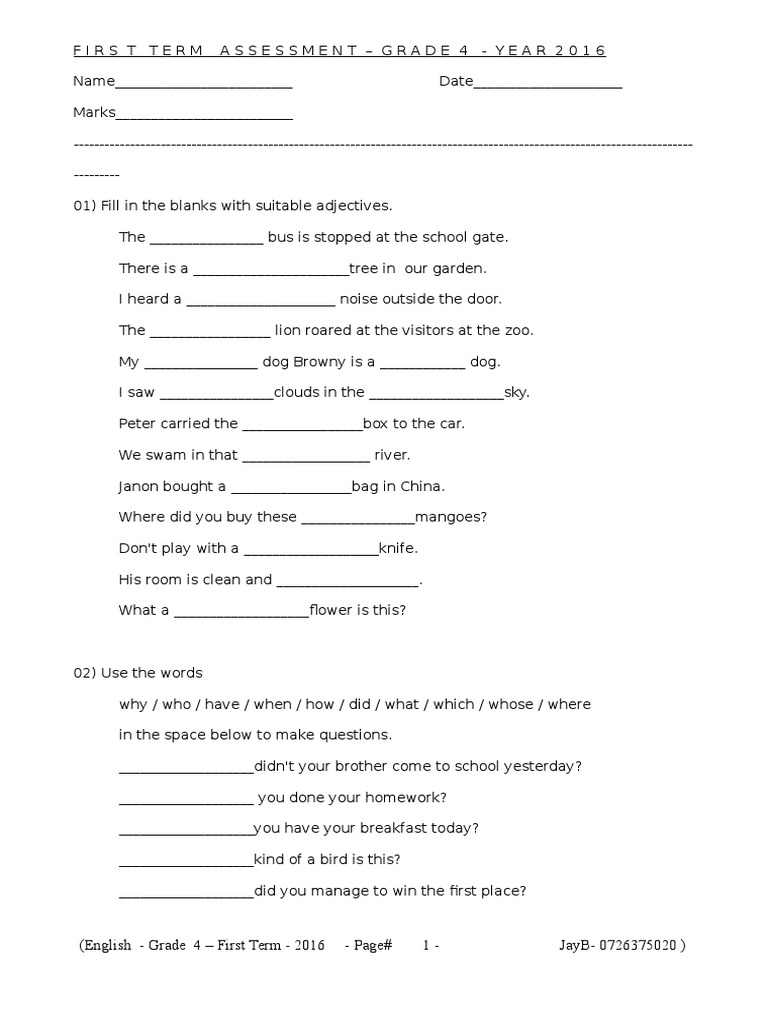 English Question Papers For Grade 4 Essaywritingmyselfsamplewebfc2com